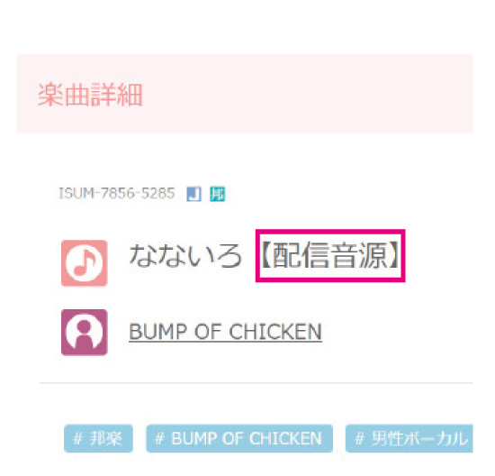 ISUM楽曲データベースの楽曲詳細に「配信音源」と